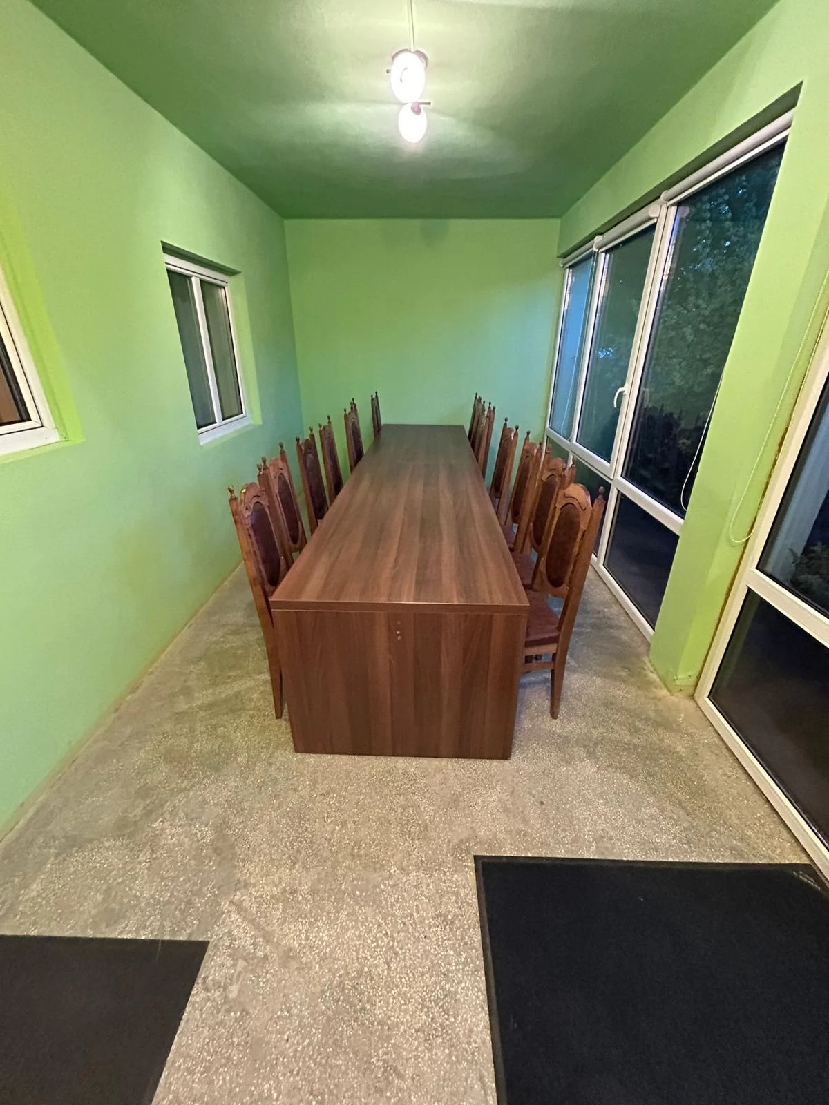 - Sala de mese poate găzdui până la 32 de persoane, cu o masă mare, perfectă pentru mese comune.