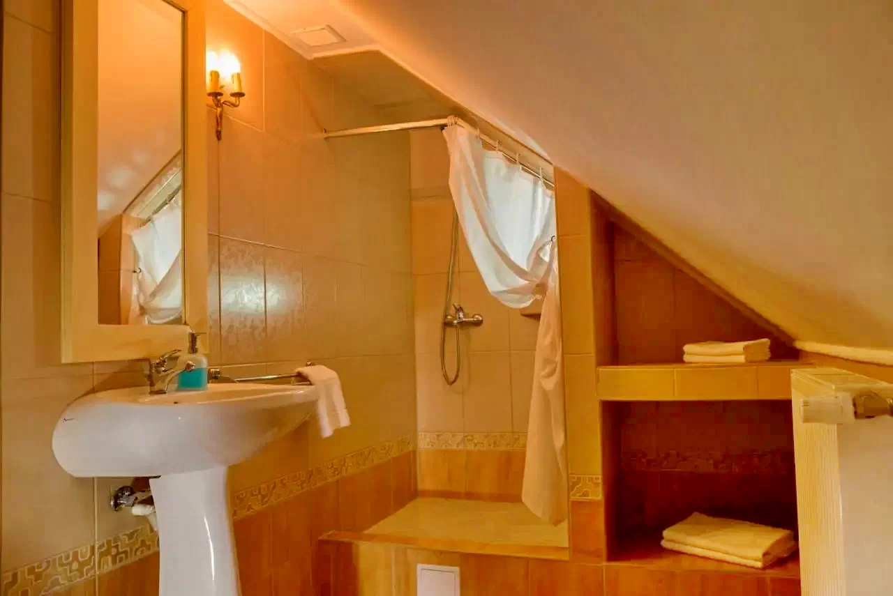 - 1 apartament cu 2 camere: camere cu intrare separata (fiecare cu pat matrimonial + pat individual), baie proprie;