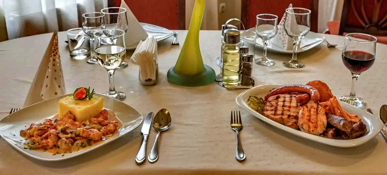 Restaurantul elegant cu capacitatea de 100 de persoane și terasa acoperită pentru 90 de persoane așteaptă atât oaspeții individuali, cat s grupurile organizate (50 - 100 - 200 de persoane) cu bucate excelente din bucătăria transilvăneană.