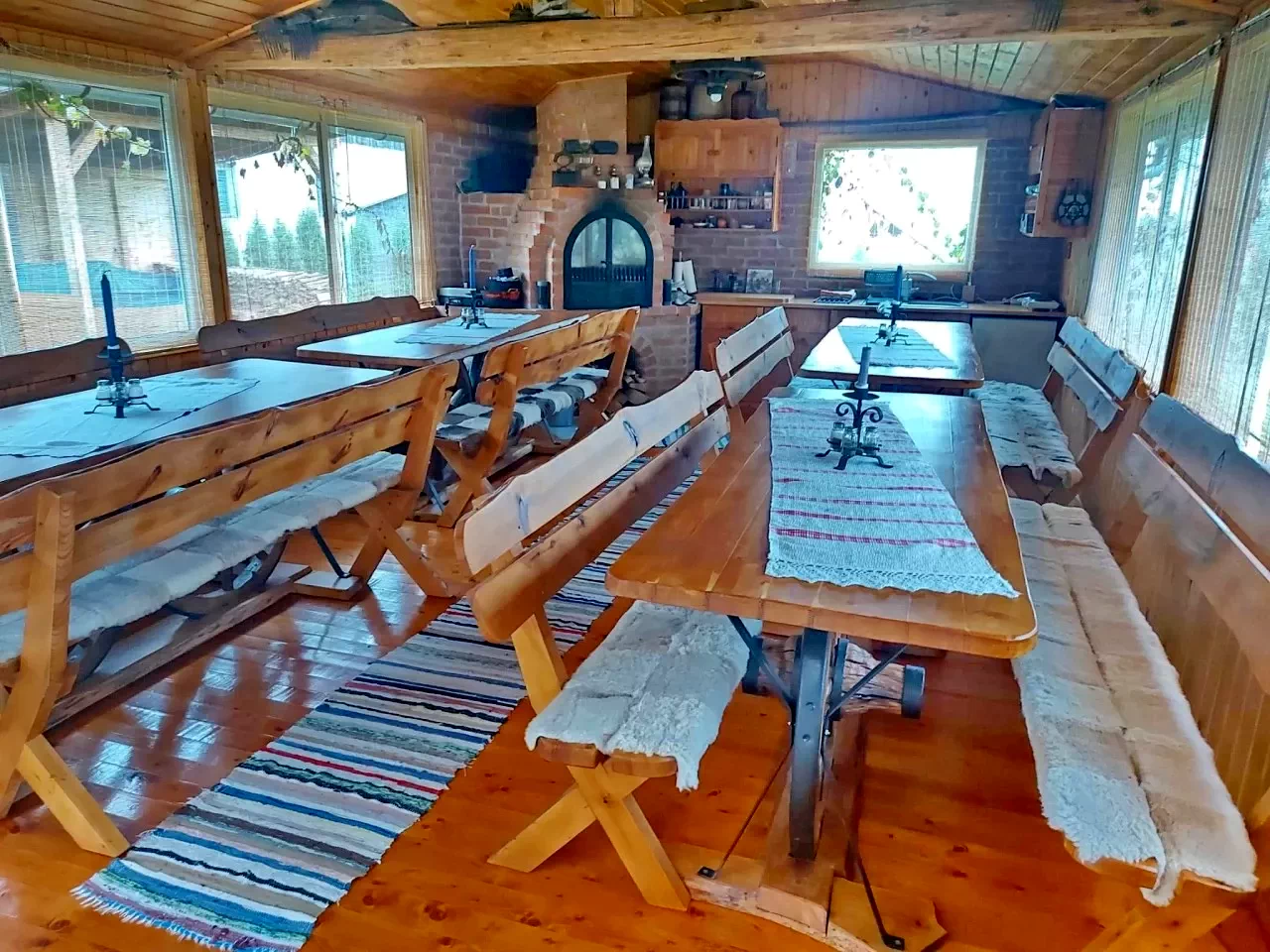 - In a doua clădire se afla o bucătărie utilata, un living spațios si o sufragerie.