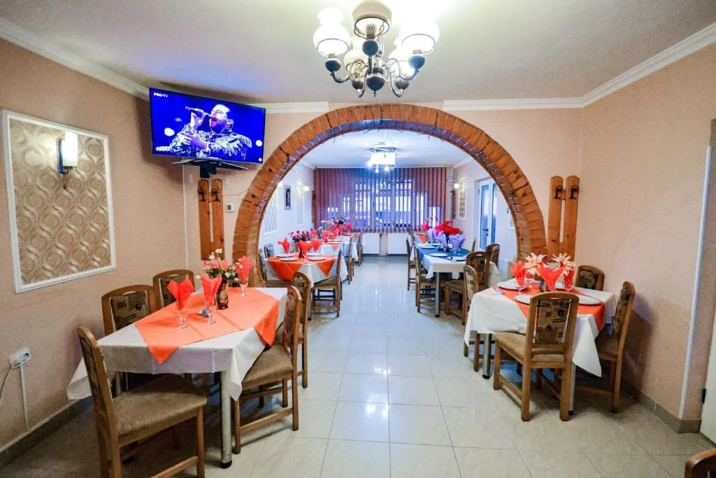 - Pensiunea găzduiește un restaurant clasic cu o sală de 60 de locuri, dotată cu aer condiționat și sistem de evacuare a fumului, precum și o terasă amenajată cu 40 de locuri, perfectă pentru mese în aer liber. Restaurantul oferă un meniu variat, de la specialități tradiționale transilvănene la preparate internaționale, pregătite din ingrediente proaspete.