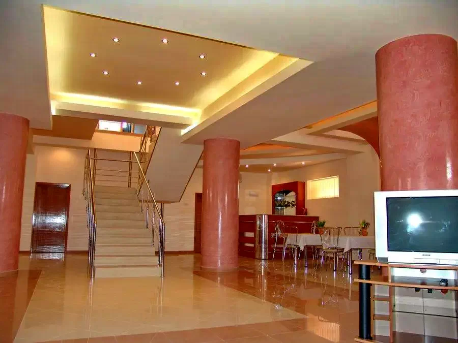 - Este o construcție noua, din 2006, are 7 camere duble (toate au pat matrimonial, iar unele mai au încă un pat de o persoana). Camerele au un confort deosebit, sunt spațioase, mobilate modern, cu baie proprie cu cabina de dus, au aer condiționat, Tv, cablu, frigider.