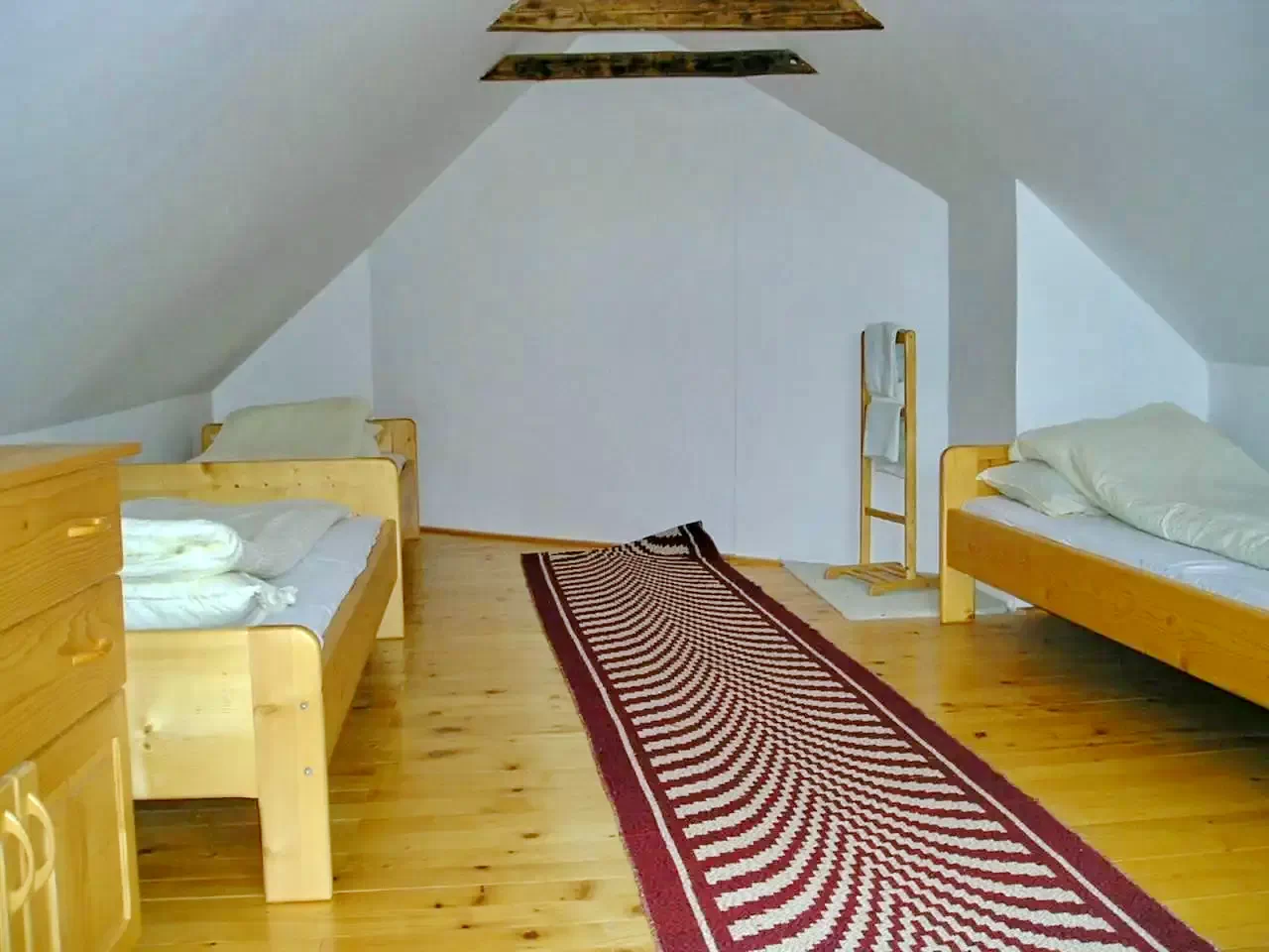 - Mansardă: 1 cameră cu trei paturi