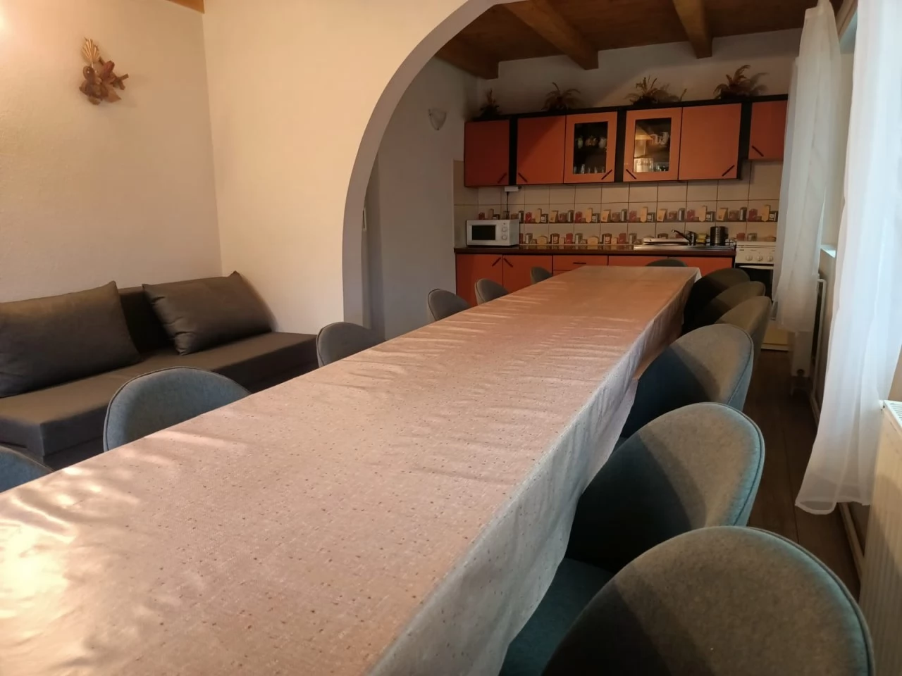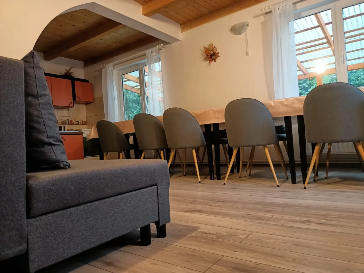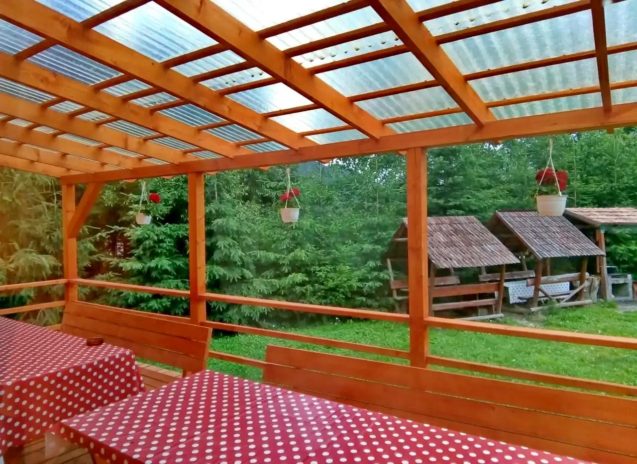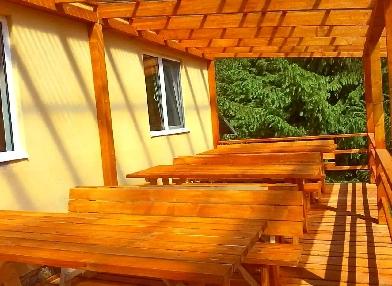 - Terasa, gradina cu vederea panoramică a munților din jur, ciubărul cu apa sărata, facilitățile de grătar si ceaun, foișor, leagăn, loc de joaca copii, precum si parcarea inchisa in curte toate stau la dispoziția oaspeților.