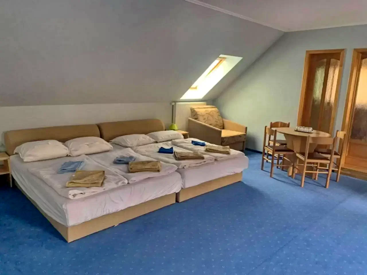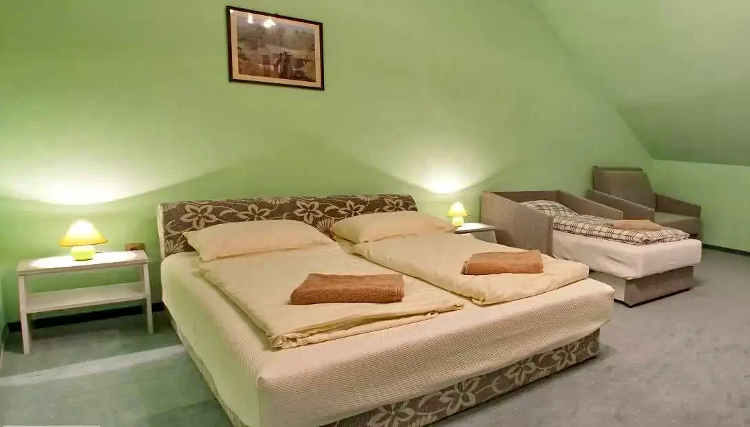 1 cameră familială cu 2 paturi matrimoniale + 1 pat suplimentar (4-5 persoane), TV și aparat fitness