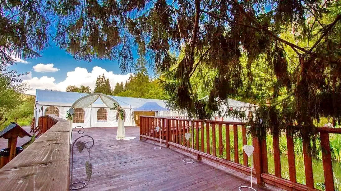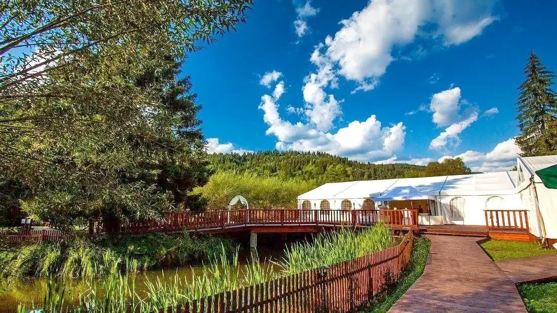 Cazare Gheorgheni Pensiune*** | Lângă pădure într-o poiană; Wellness: ciubăr, saună, cada cu hidromasaj; Restaurant, terasa de vara, gradina, cort pentru evenimente, Iaz de pescuit la păstrăv, foișor, parcare | 18km pârtia de schi Izvoru Mureșului