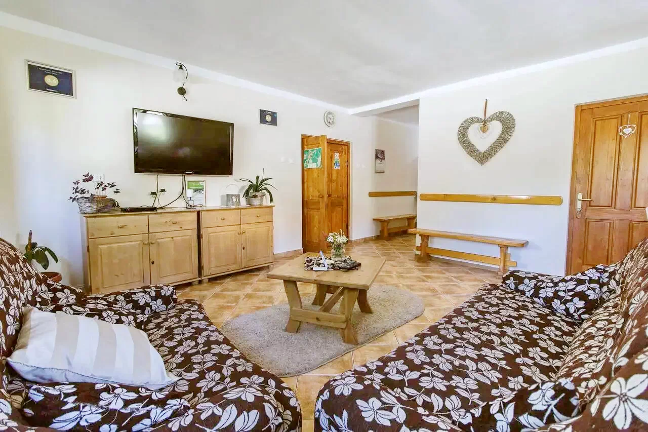 - Ofera bucătărie, sufragerie şi o cameră de zi cu vedere la munţii din jur şi la grădină. Bucătăria dotată cu facilităţi moderne, oferă posibilitatea de autoaprovizionare.
