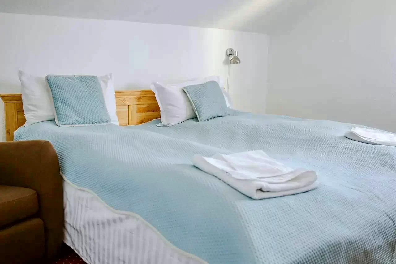 - 2 camere duble cu pat matriminial si fiecare cu baie proprie