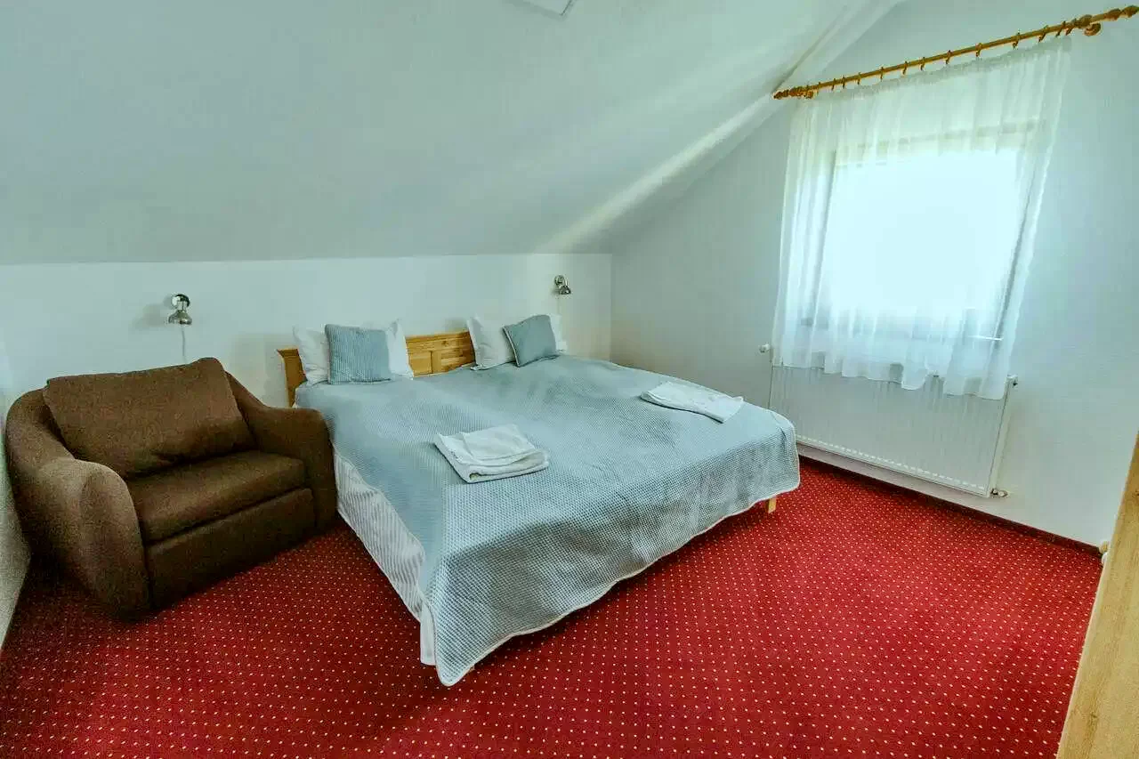 - Pensiunea dispune de 10 camere cu pat dublu (6 camrere duble twin, 2 camere cu pat matrimonial si 3 camere triple).