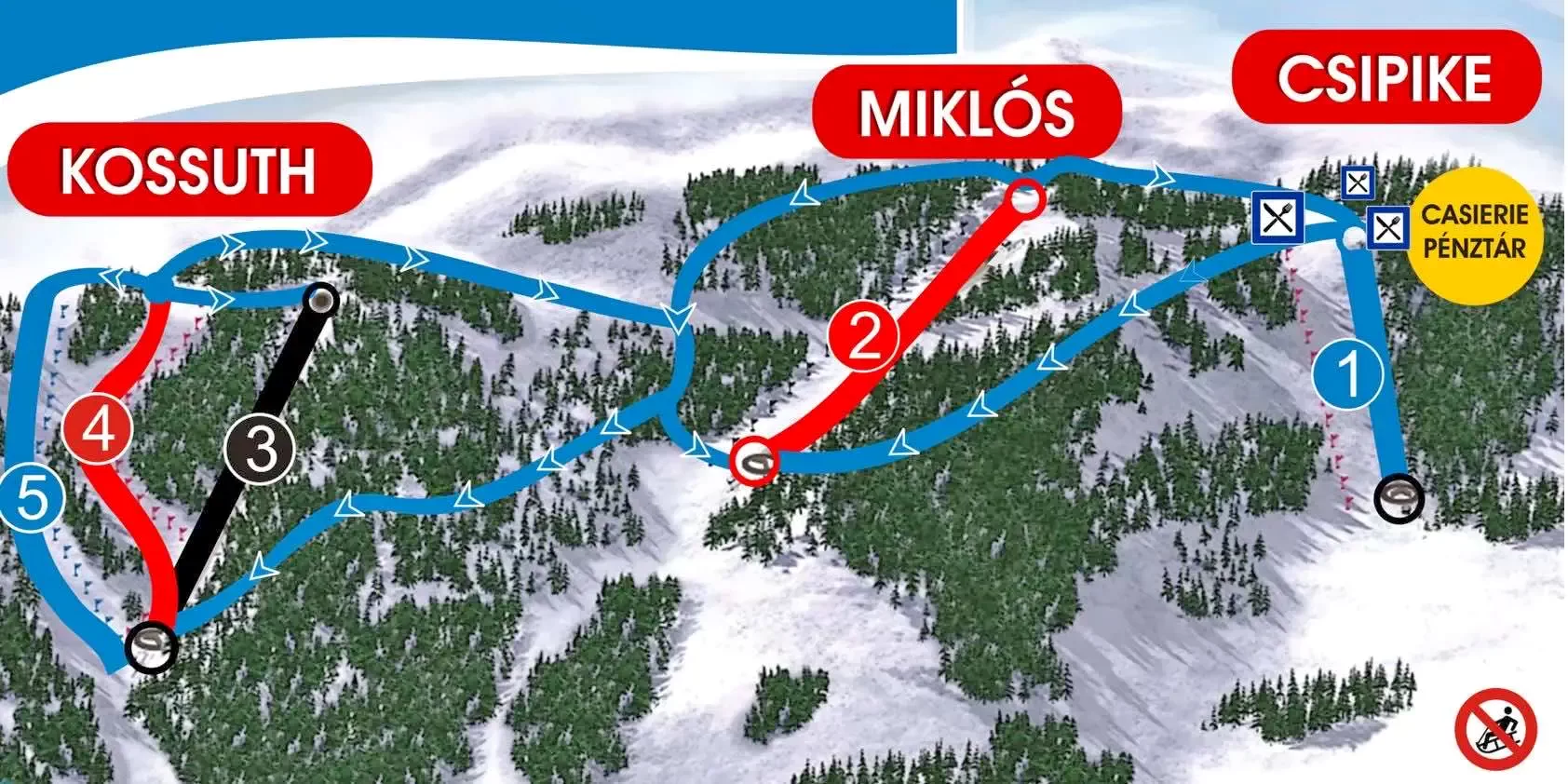 - Mesele sunt de tip auto-servire, dar există posibilitatea de a comanda masă „à la carte” la Pensiunea Csíki, situată în apropiere.