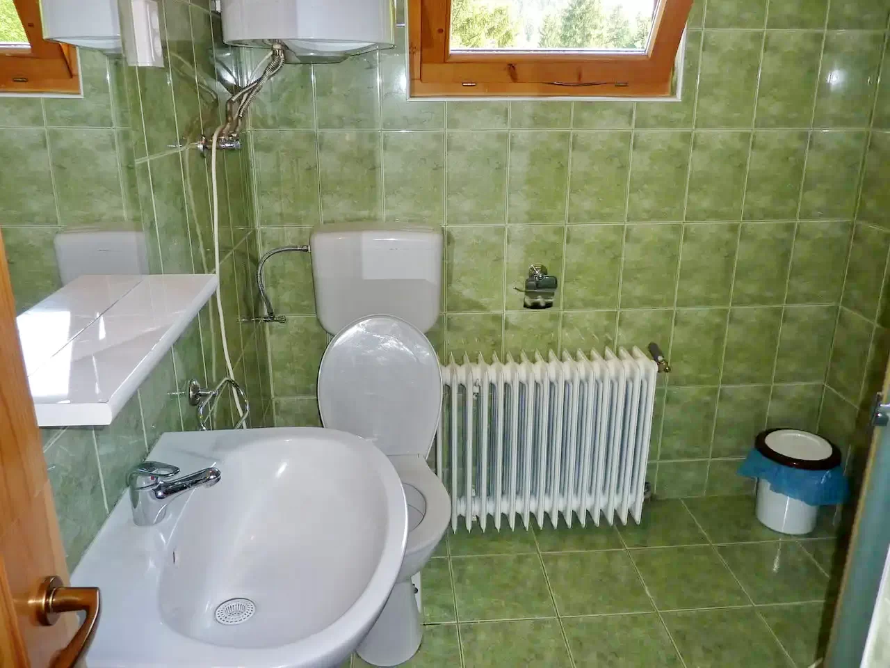 - Apă caldă: apă de la fântână, încălzită cu energie electrică și lemne