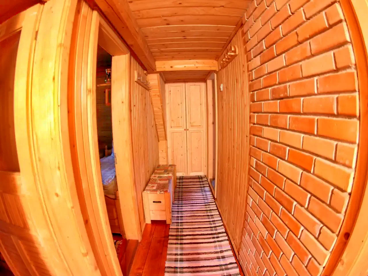 Cabana este încălzită cu șemineu și încălzire centrală, iar apa caldă este asigurată electric sau cu lemn, garantând confort pe tot parcursul anului.