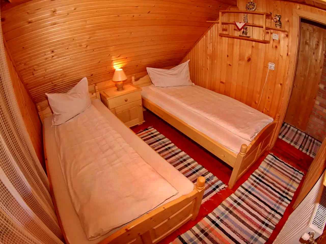 Etaj: 3 camere (1 cameră cu 1 pat dublu și 2 paturi simple, 2 camere cu câte 2 paturi simple), 1 baie (duș, WC, chiuvetă).