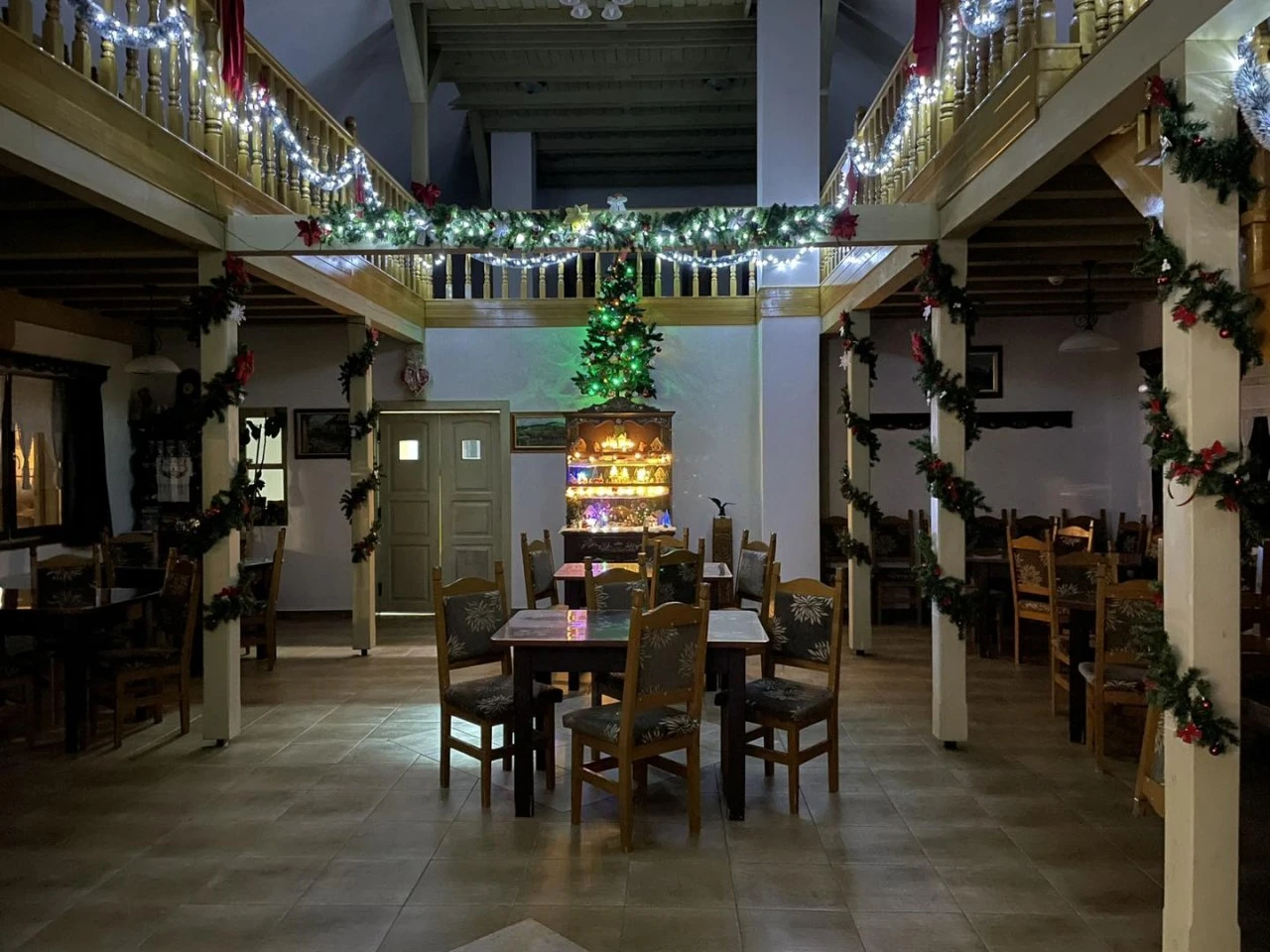 - Sala de mese spațioasă, decorată cu mobilier tradițional, și galeria acesteia sunt perfecte pentru organizarea de evenimente, fie ele familiale sau corporate.