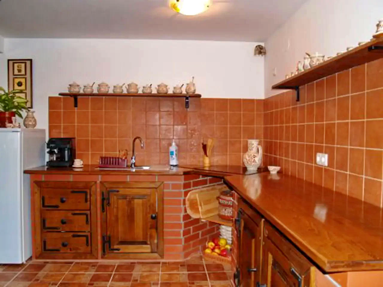 Bucătărie: Plită electrică, frigider, filtru de cafea, vase, tacâmuri.