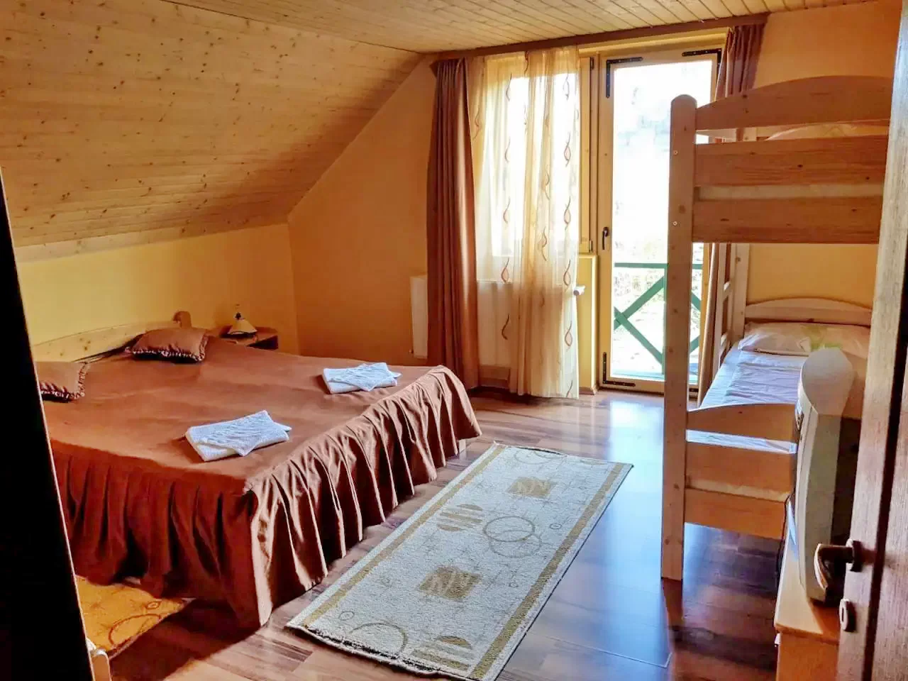 - Camerele sunt amenajate cu gust, asigurând un somn odihnitor, iar cele două camere din mansarda wellness-ului oferă o priveliște spectaculoasă spre Munții Harghita.