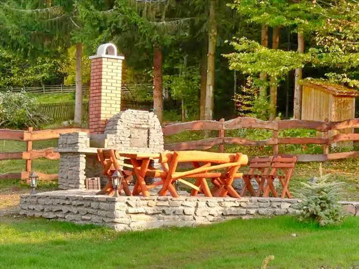 Gătit în aer liber: Grătare, ceaune, cuptor, spațiu pentru foc de tabără.