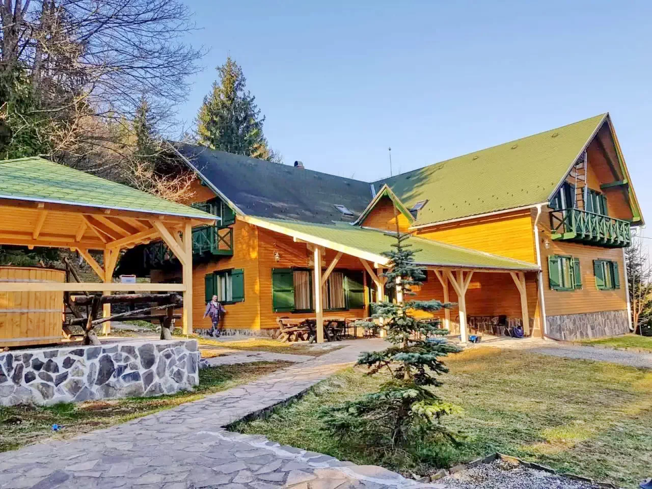 - Secțiunea de wellness reprezintă punctul forte al pensiunii: jacuzzi pentru 5 persoane, saună și piscină interioară încălzită (contra cost), valamint un ciubăr exterior încălzit pentru 6–8 persoane (contra cost) oferă relaxare supremă.