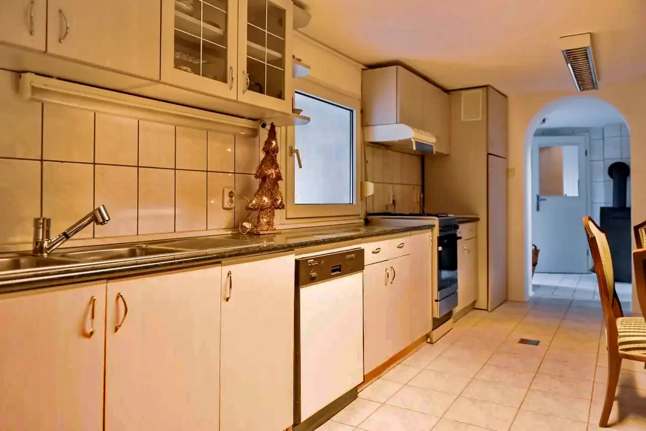 - Curtea spațioasă este perfectă pentru gătit în aer liber și relaxare, iar terasa acoperită protecție împotriva intemperiilor.