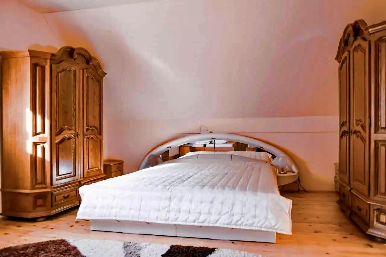Camera 6: 4 paturi single + 1 pat matrimonial (6 persoane) Notă: Paturile single nu pot fi unite. Lenjeria de pat de calitate și cele patru băi cu duș garantează confortul oaspeților.