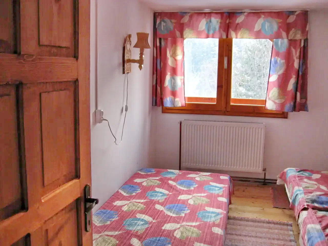 - La etaj, dintr-un coridor lung se deschid două camere și o baie cu toaletă și duș. Prima cameră are un pat matrimonial, iar a doua cameră are trei paturi de o persoană.
