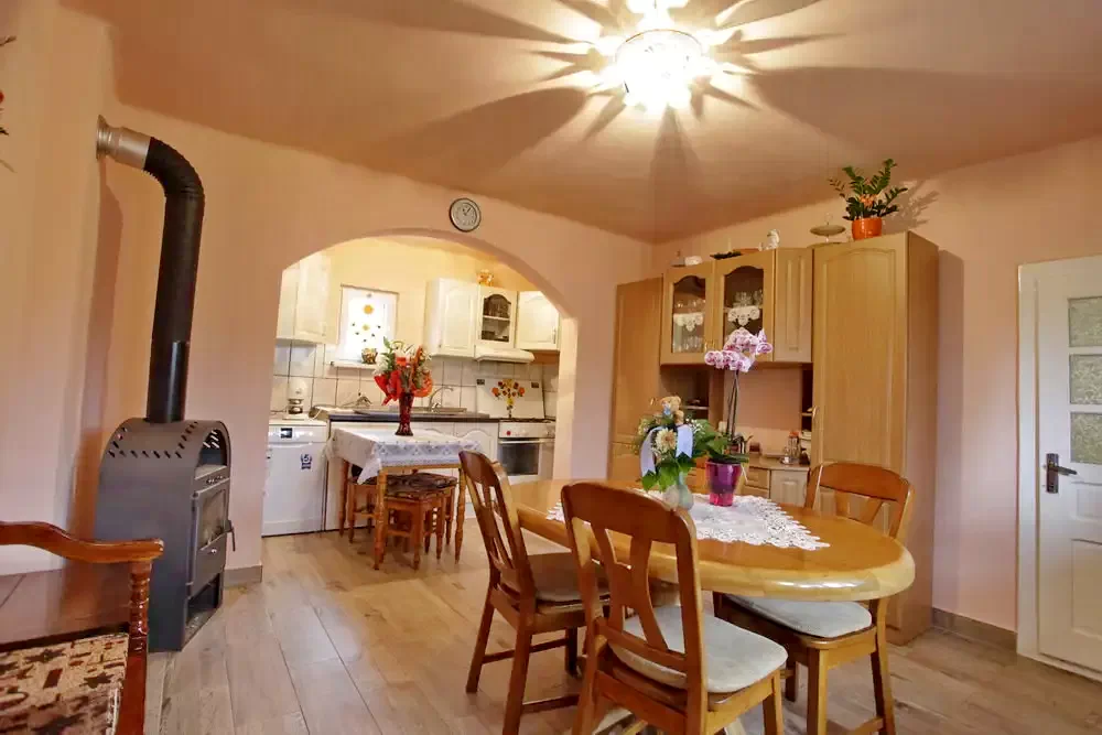 - Camerele de la parter sunt încălzite cu sobe de teracotă si cu calorifere electrice la etaj.