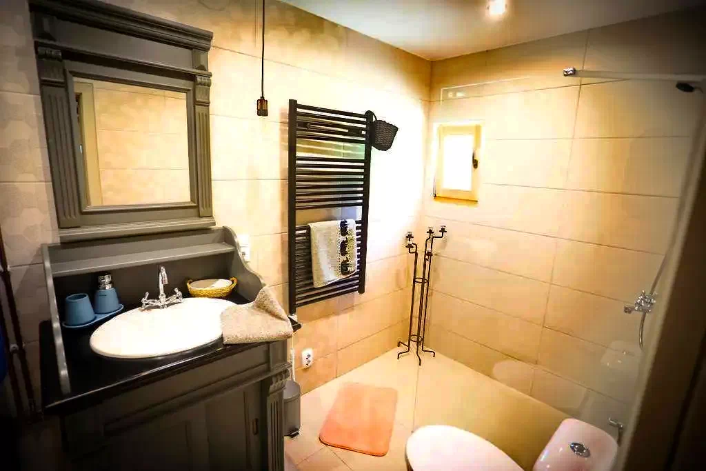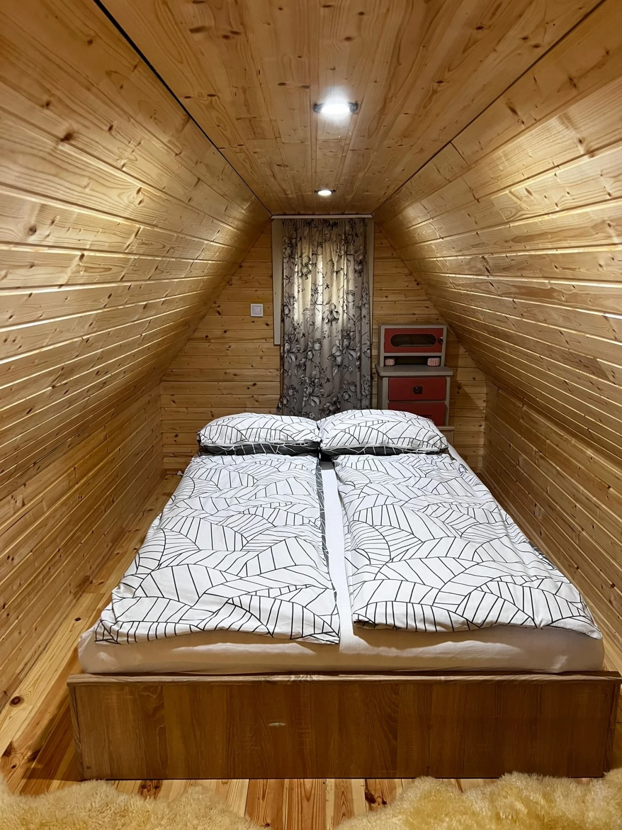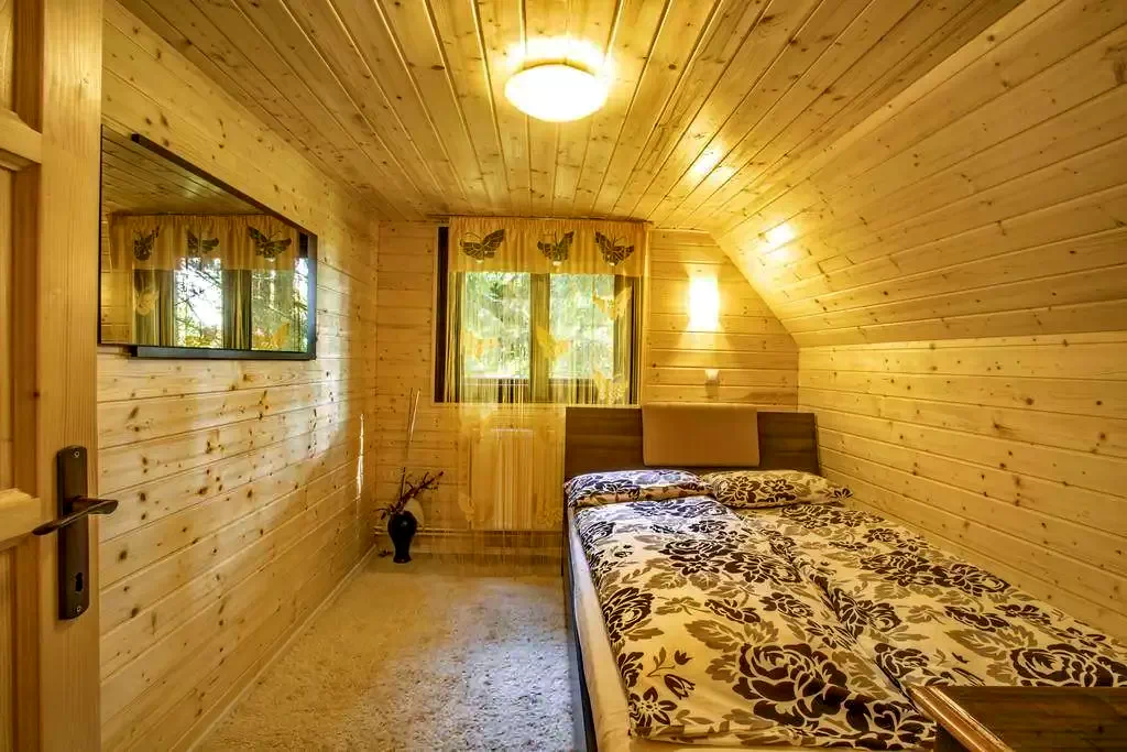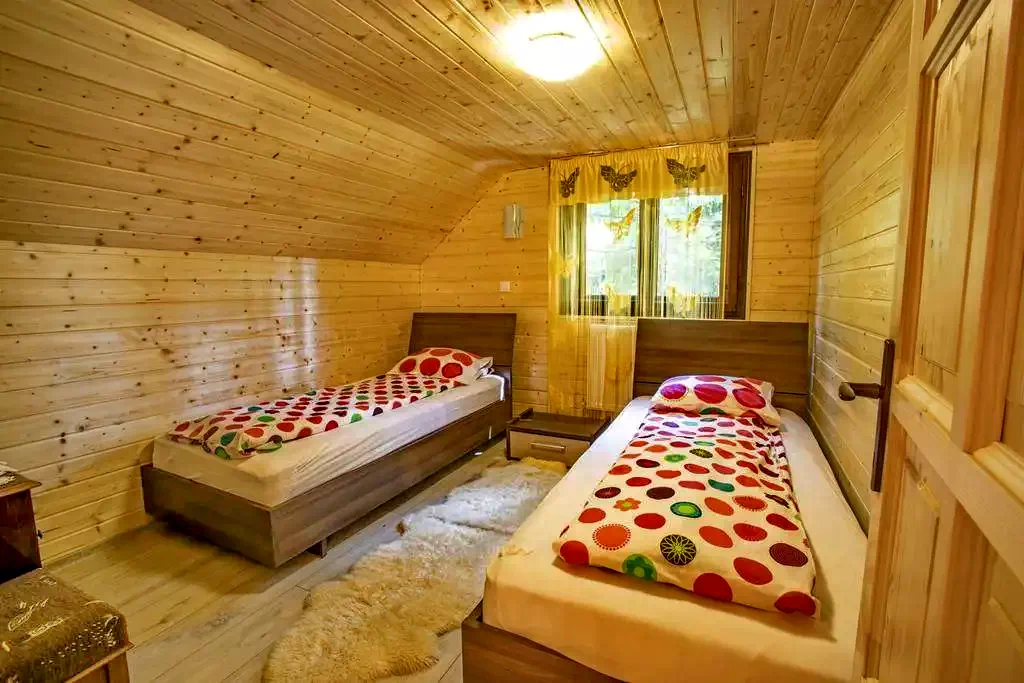 - Etajul galeriei are două dormitoare, unul cu un pat dublu și celălalt cu 2 paturi de o persoană.