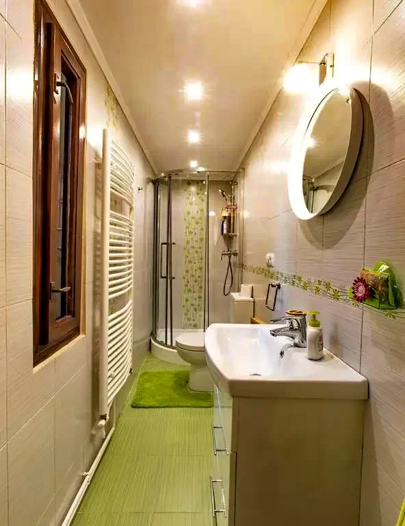 - La parter este o bucatarie utilata, o sufragerie, o canapea extensibilă pentru 2 peroane, o camera de baie și o terasă mică
