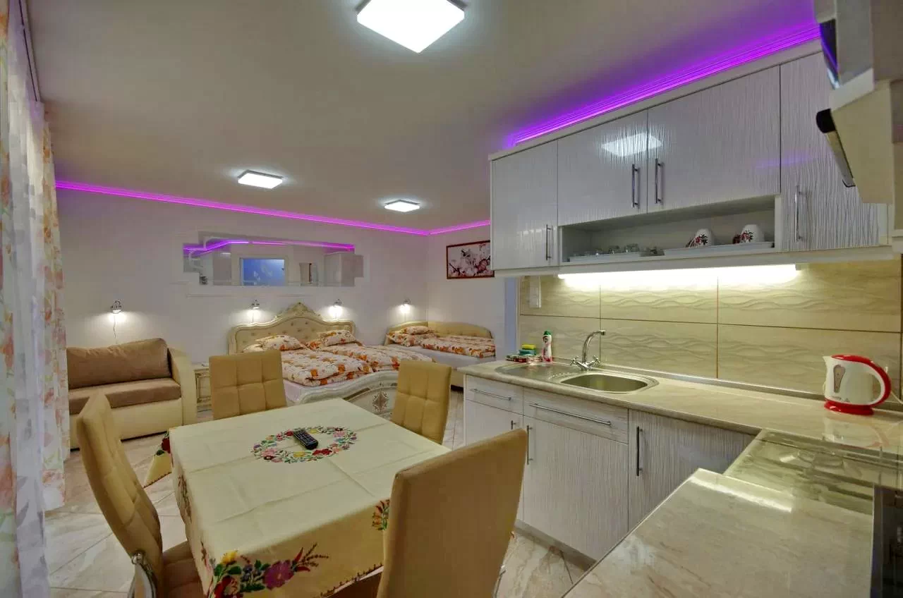 Apartamentul spatios, confortabil dispune si de o parcare in curte inchisa, unde va puteti parca masina in siguranta in orice moment al zilei. Unitatea de cazare este dotată cu aer condiționat, are o bucătărie complet utilată. Ne întâmpinăm oaspeții în apartamentul De Luxe pe tot parcursul anului.