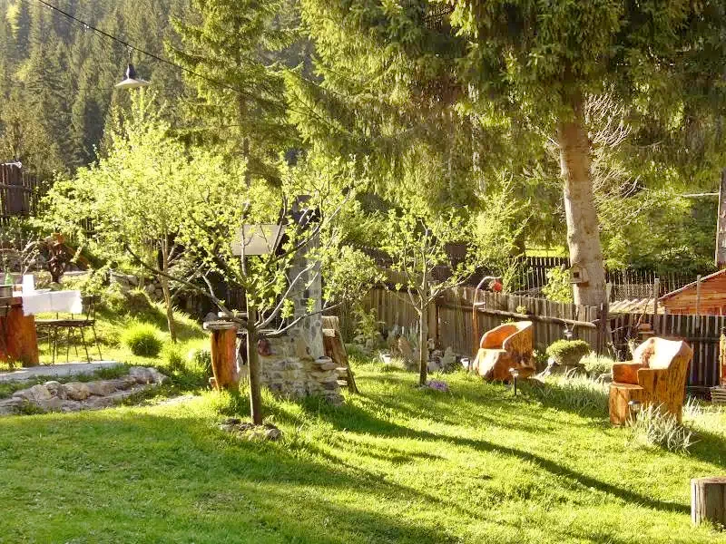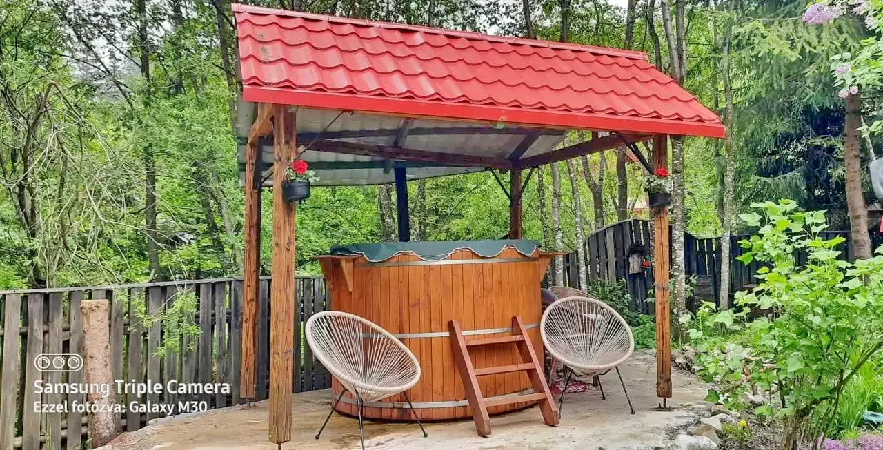 Cazare Lacu Roșu Cabana** | Wellness: Ciubăr; În pădure cu pârâu in curte, bucătărie, living, șemineu, terasă, grădină, foișor, grătar, loc de joacă, parcare | 4km Pârtia de schi Gheorgheni, 16km Lacul Roșu, 18km Cheile Bicazului