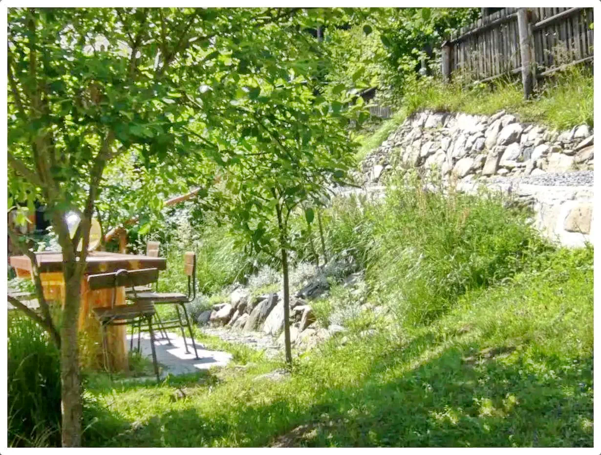 - În curte are un ciubar cu apa sarata, un cuptor pentru grătar sau pentru a fierbe o ciorbă, teren de joc, teren de sport, parau, foișor, parcare pentru mașini.
