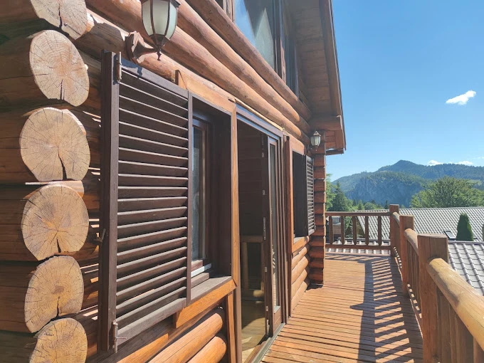 - Mobilierul din vilă este realizat în totalitate din lemn, creând o atmosferă prietenoasă și călduroasă.