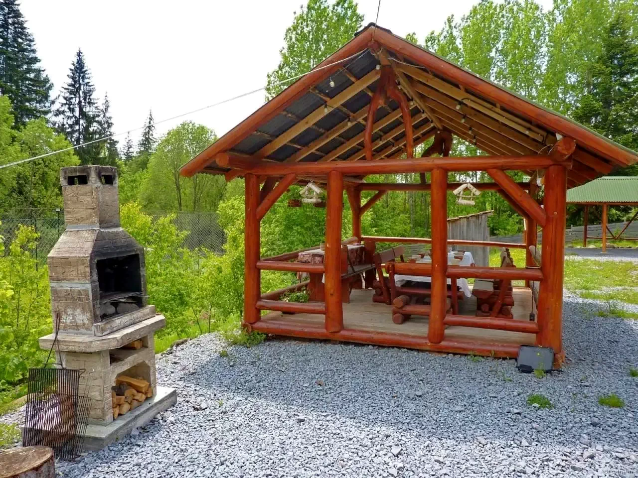 - Pentru pasionații de gătit în aer liber, curtea de 5000 m² include un foișor acoperit, unde se pot folosi grătarul, locul de foc și ceaunul, oferind o experiență culinară autentică în peisajul Munților Harghita.