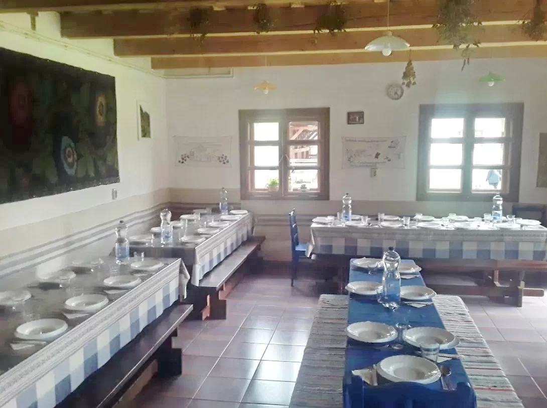 - Dispune de sala de mese in stil rustic si ofera masa (mic dejun, pranz, cina) oaspetilor cazati.