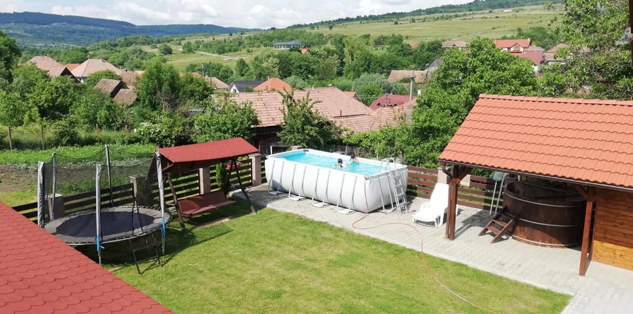 Cazare Lupeni Pensiune *** | Wellness: ciubăr, piscină pentru copii, saună; Bucătărie, sufragerie, mese, WI-FI, terasă, curte-gradina, foișor, grătar, trambulină, parcare | 11 km de Odorheiu Secuiesc SPA, 19 km de pârtia Homorod, 21 km de Salina Praid