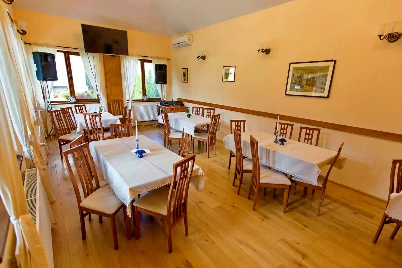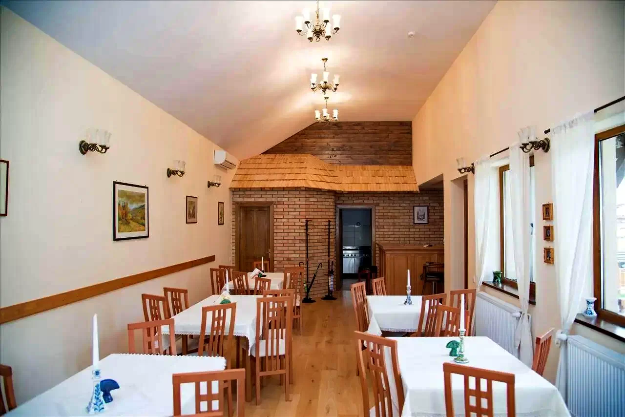 - Are o sală de mese spațioasă, luminoasă și confortabilă pentru 30 de persoane.