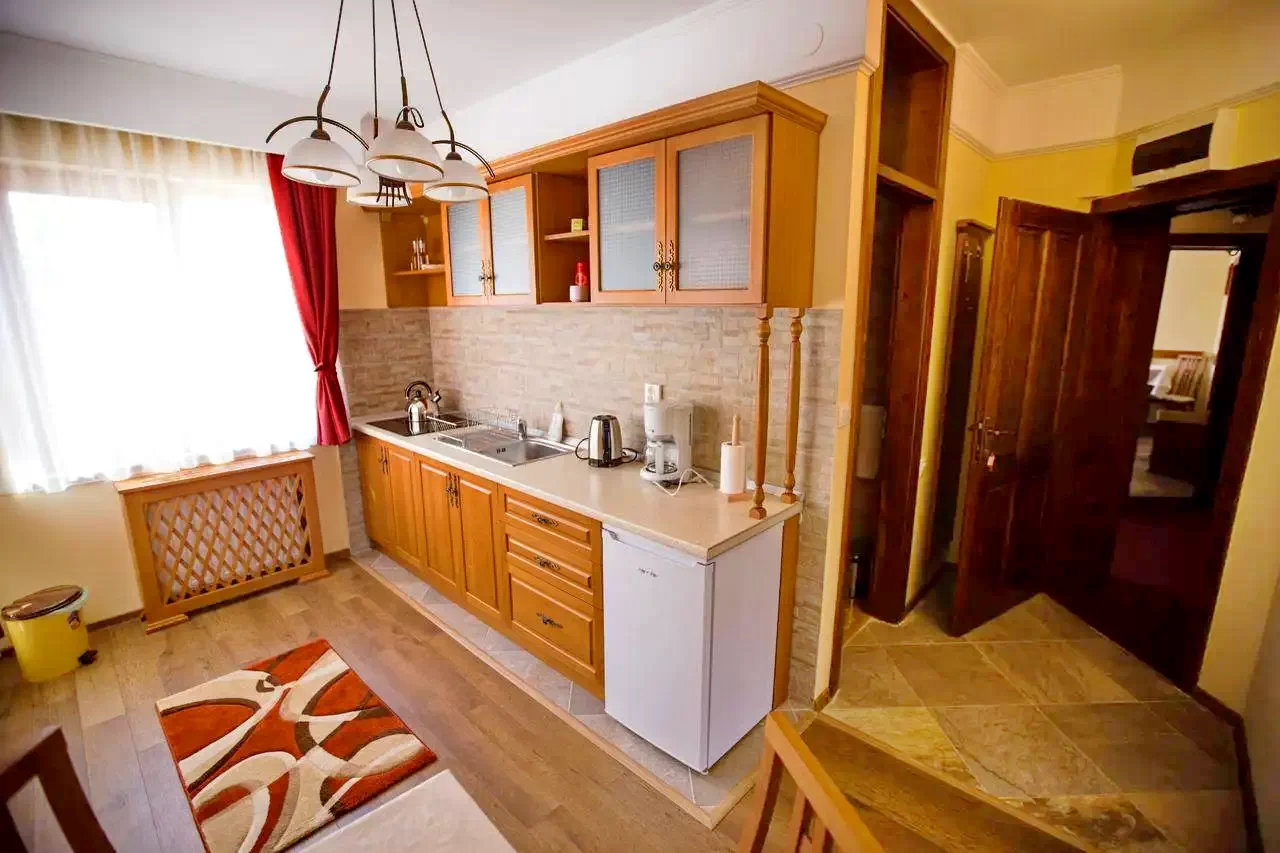 - Are o bucătărie bine utilată, modernă și elegantă pentru oaspeți.