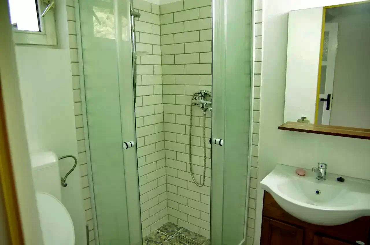 - Oferă cazare decentă pentru 15 persoane cu un total de 5 dormitoare, 2 băi, 4 toalete și o zonă comună.