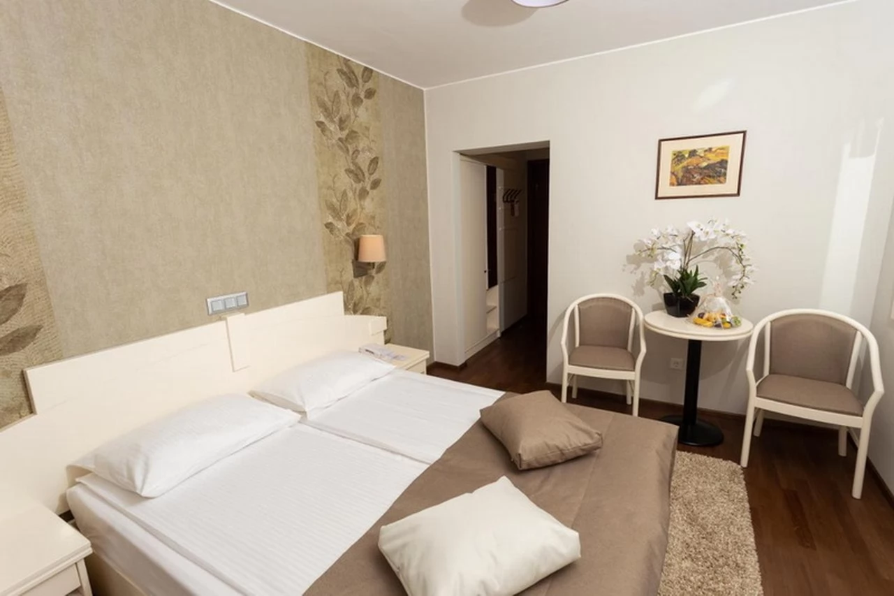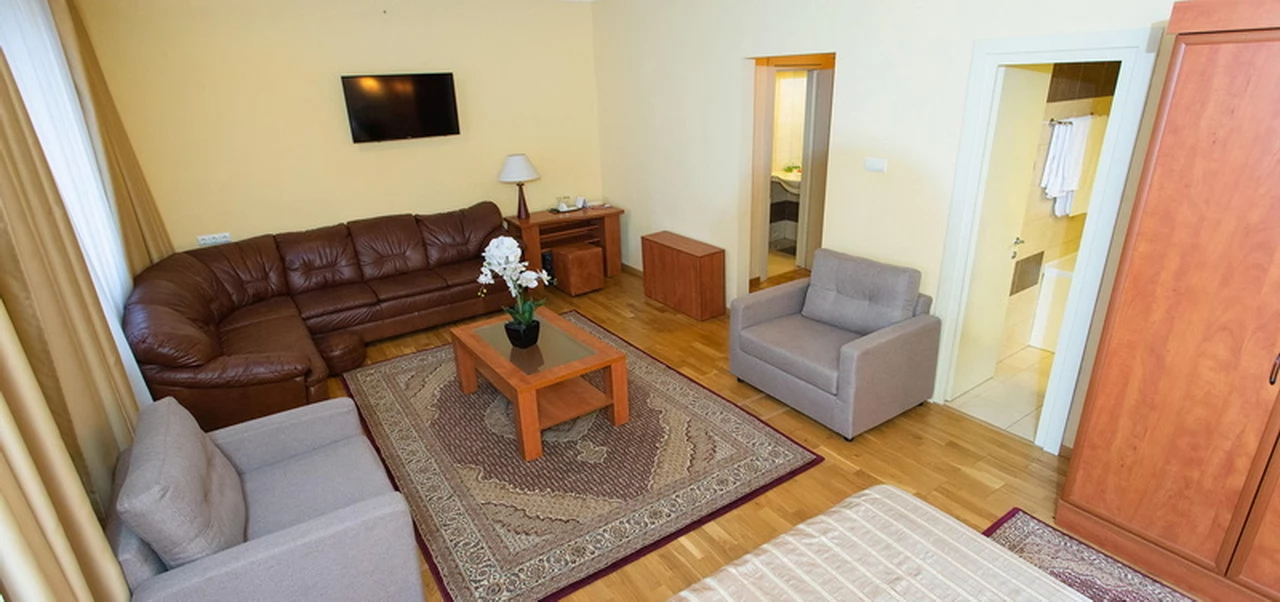 • Acces nelimitat la zona de wellness (piscină cu jeturi, jacuzzi, saună finlandeză, infrasăună, baie de aburi, cameră cu sare, butoaie cu apă minerală și apă de vin)