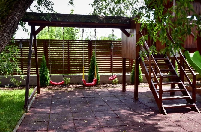 Grădină amenajată de 1500 m², ciubar, foișor, grătar, leagăn, loc de joacă pentru copii, parcare gratuită, închiriere de biciclete, echipament pentru picnic.