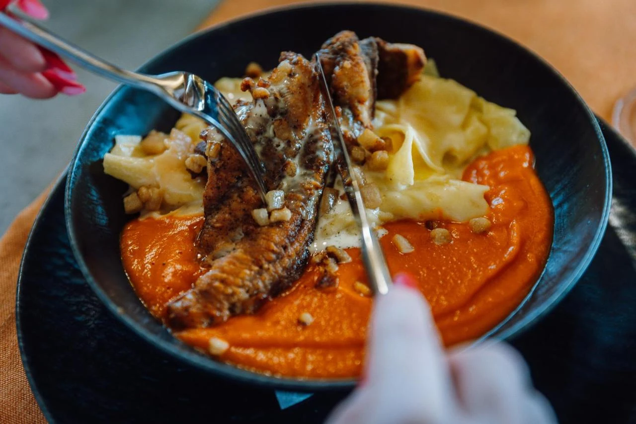 - Meniul include mâncăruri vegetariene delicioase și cocktailuri excelente, pe care le puteți savura și la mesele în aer liber, bucurându-vă de aerul proaspăt și de peisaj.