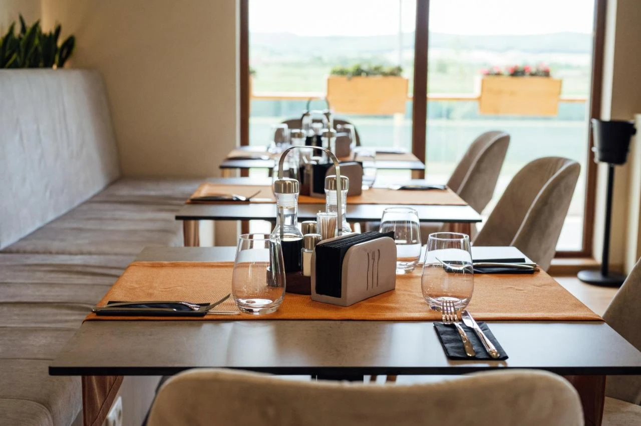 - Micul dejun este oferit sub formă de bufet suedez, variat și bogat, iar la cerere sunt disponibile pachete de demipensiune sau pensiune completă pentru o experiență culinară fără griji.
