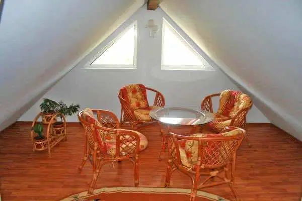 - 30 locuri de cazare in camere dotate cu Tv, cablu, apa calda non stop si incalzire centrala, dispuse astfel: 4 camere cu trei locuri si 8 camere cu 2 locuri.