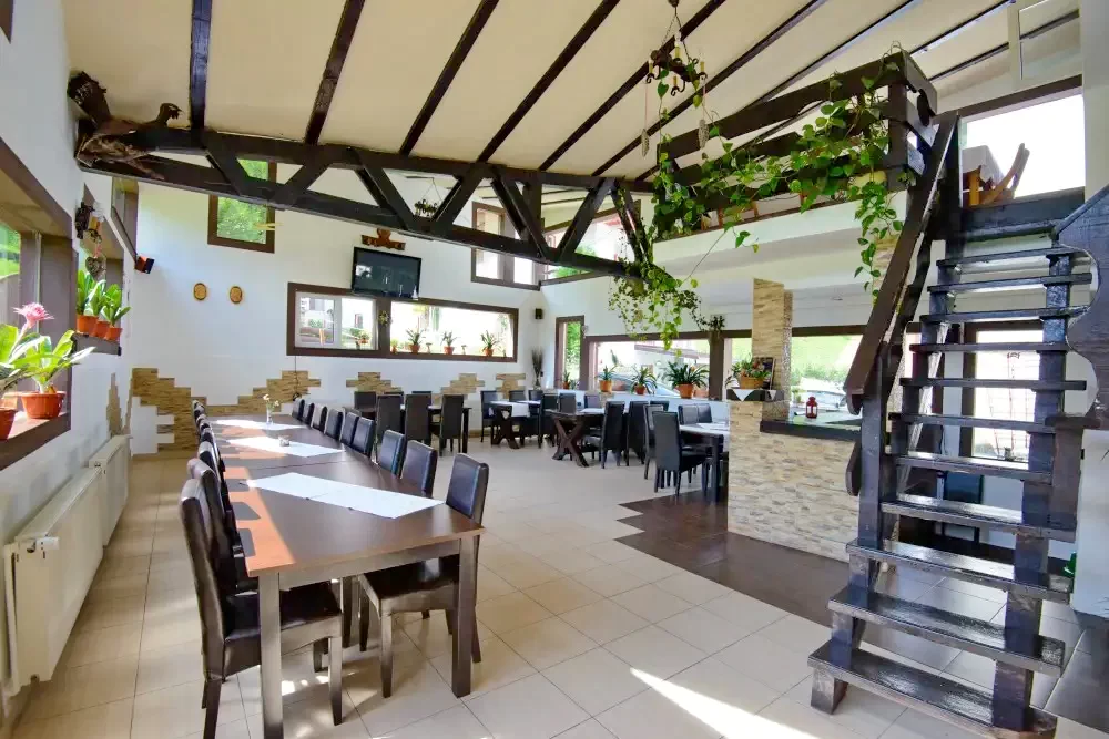 Cele 75 de locuri de cazare si facilitățile oferite (restaurant, terasa, sala de conferințe, loc de joaca, foișor) transforma pensiunea intr-un spațiu ideal atât pentru grupuri cat si pentru familii.