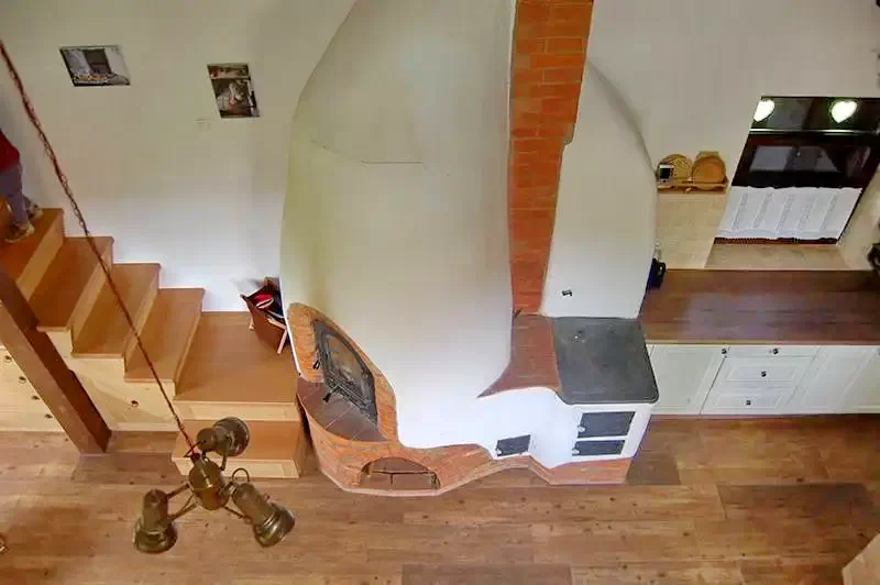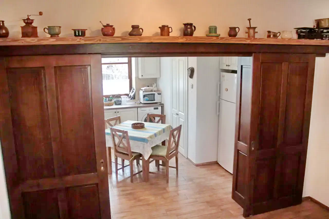 - Casa Mica - are o bucatarie-sufragerie cu cuptor tradițional.
