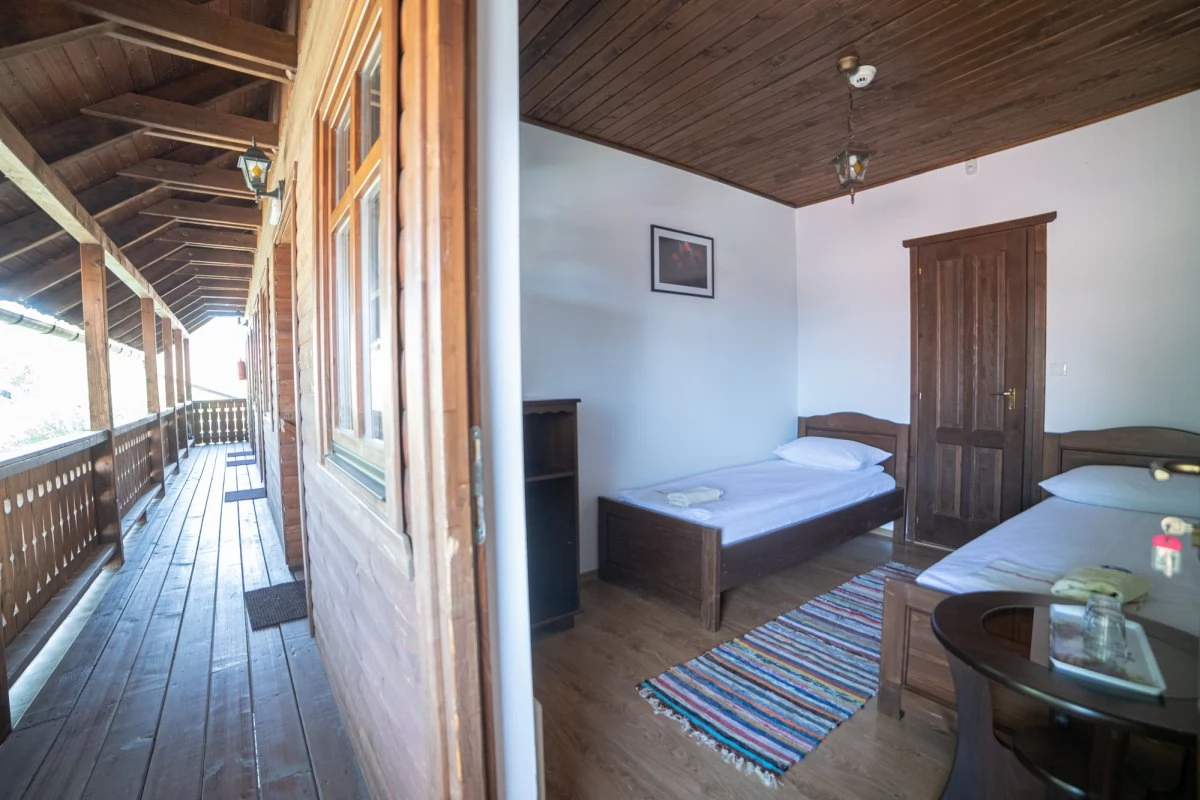 - 4 camere duble (fiecare cu 2 paturi de o persoană și baie proprie)