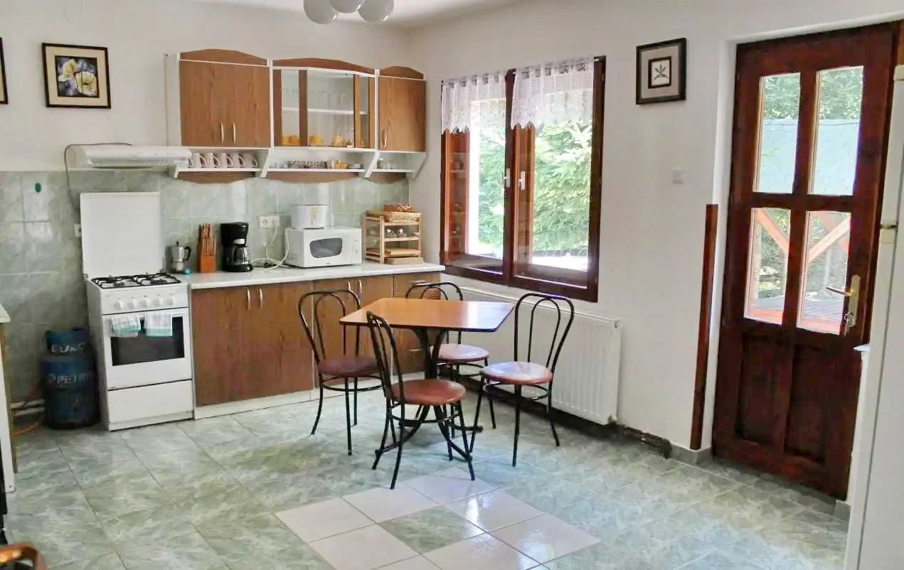 - Bucătăria modernă pusă la dispoziția oaspeților este echipată cu tot ce este necesar pentru gătit: aragaz, frigider, cuptor cu microunde, prăjitor de pâine, filtru de cafea, ceainic, precum și vase, tacâmuri și farfurii.
