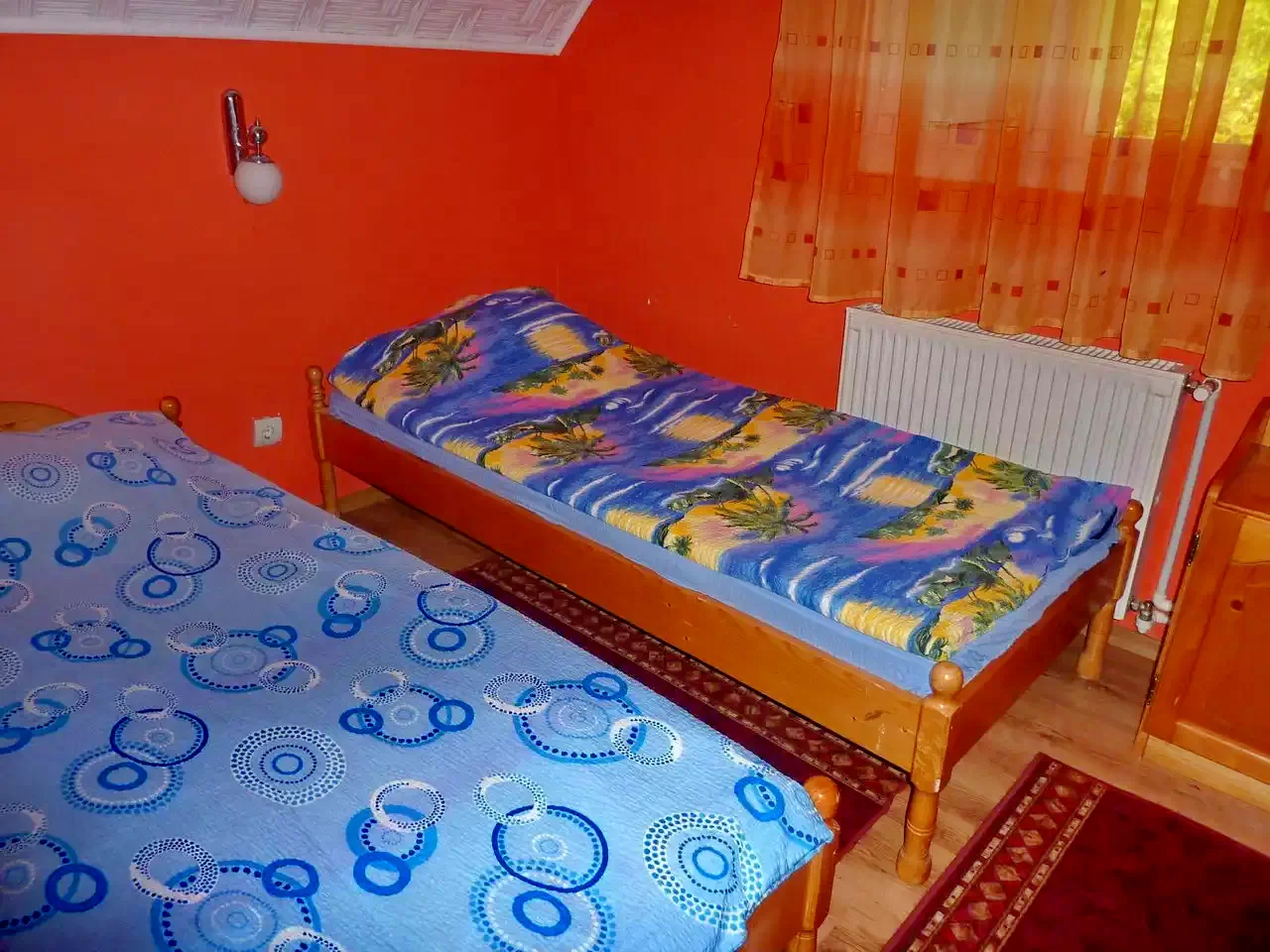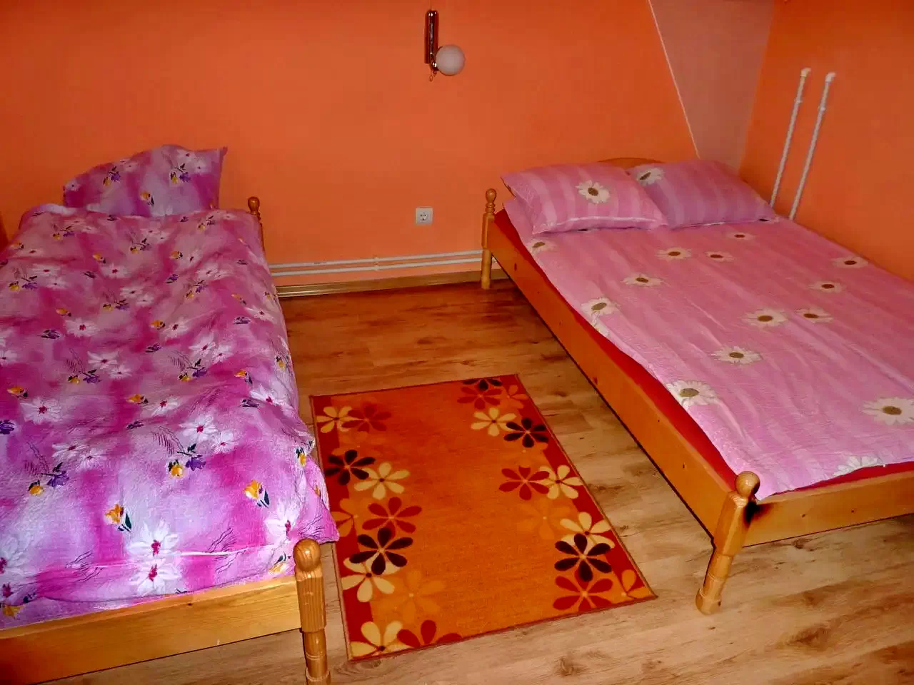 - Camerele sunt variate: o cameră cu două paturi de o persoană, două camere cu un pat dublu și un pat de o persoană fiecare și o cameră cu două paturi duble.