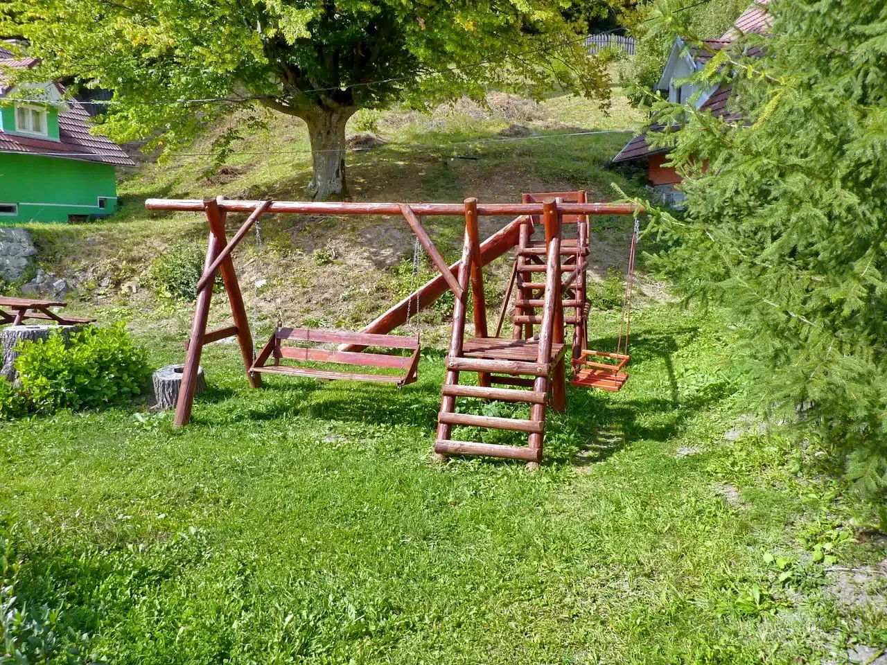 - Leagăn, tobogan, coș de baschet, masă de ping-pong, teren de fotbal