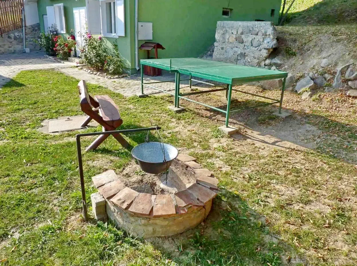 - În curte, un foișor acoperit, un cuptor pentru grătar, un loc de foc și un ceaun oferă posibilitatea de a găti în aer liber, astfel încât oaspeții pot prepara mâncăruri tradiționale secuiești.